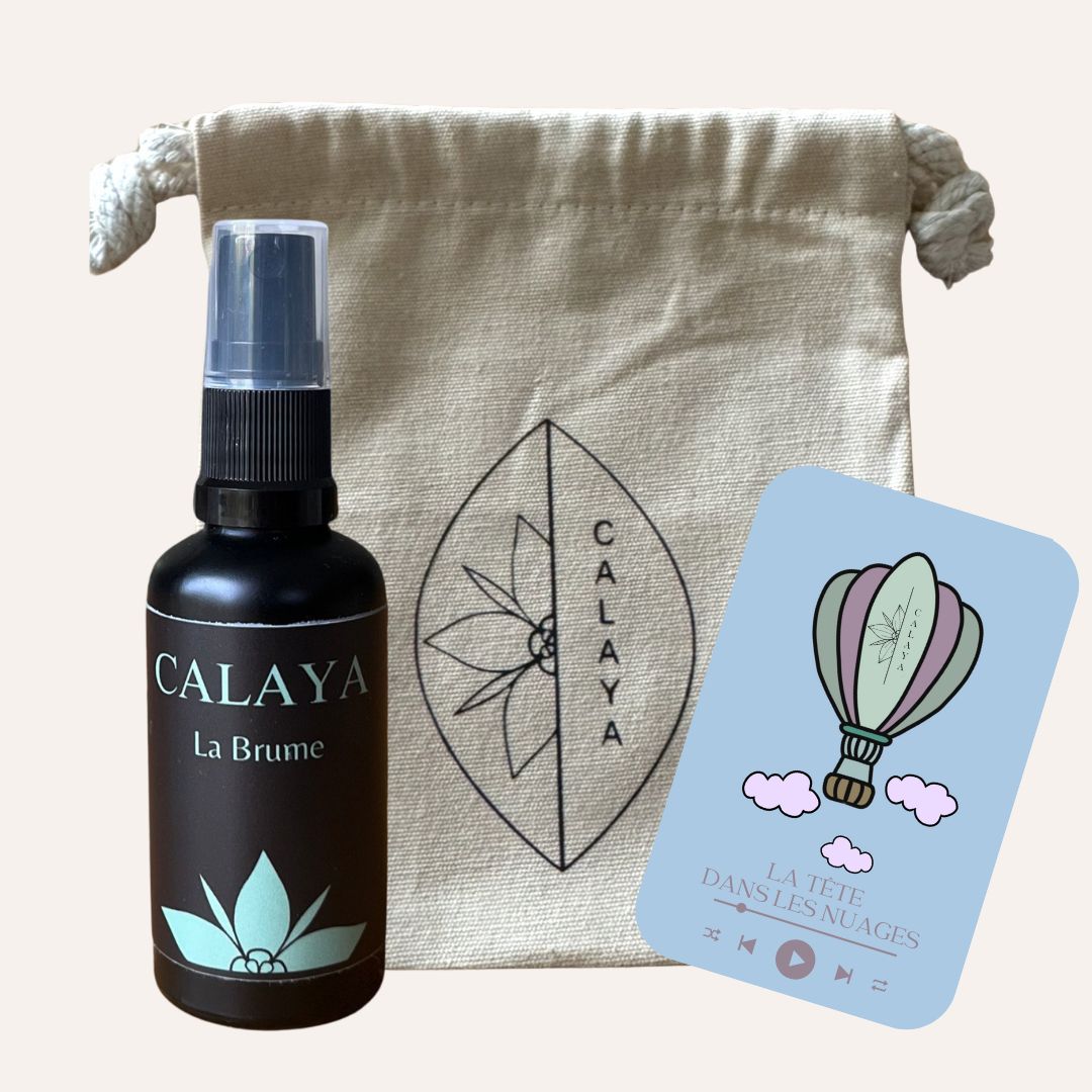 Créée avec la signature olfactive unique de CALAYA, la brume & son histoire est conçue pour t’accompagner vers une détente profonde. Composée d’huiles essentielles aux propriétés apaisantes, cette brume t’aide à relâcher les tensions, apaiser ton esprit et créer une sensation de bien-être.